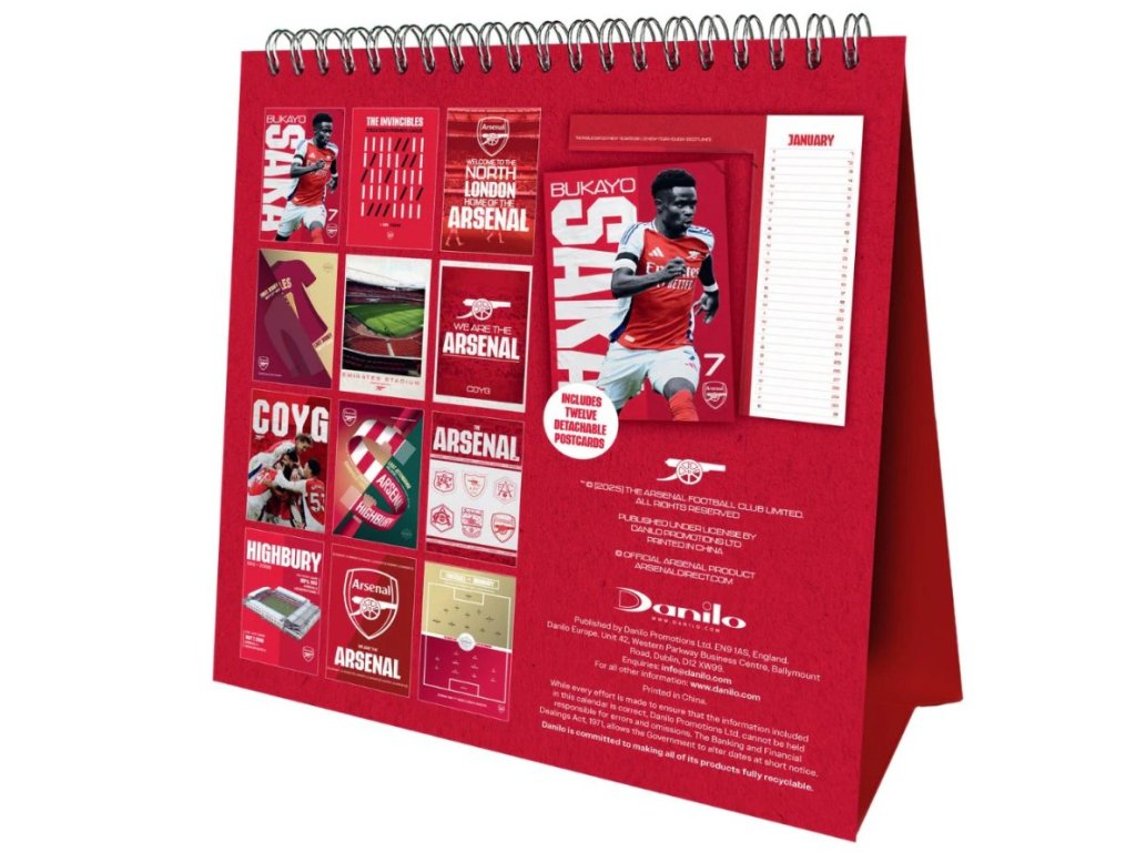 Oficiální produkt - stolní kalendář na rok 2026 s licencí britského fotbalového klubu FC Arsenal Londýn.