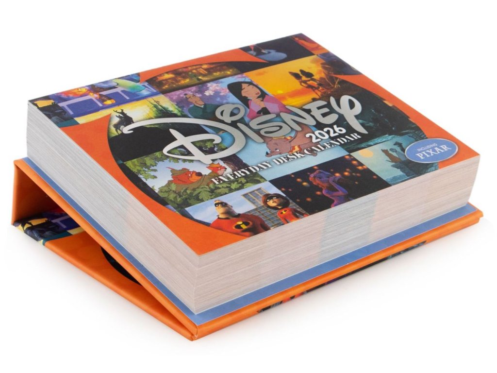 Oficiální denní stolní trhací kalendář studia Disney na rok 2026 s licencemi animovaných postaviček dětských filmových hrdinů.
