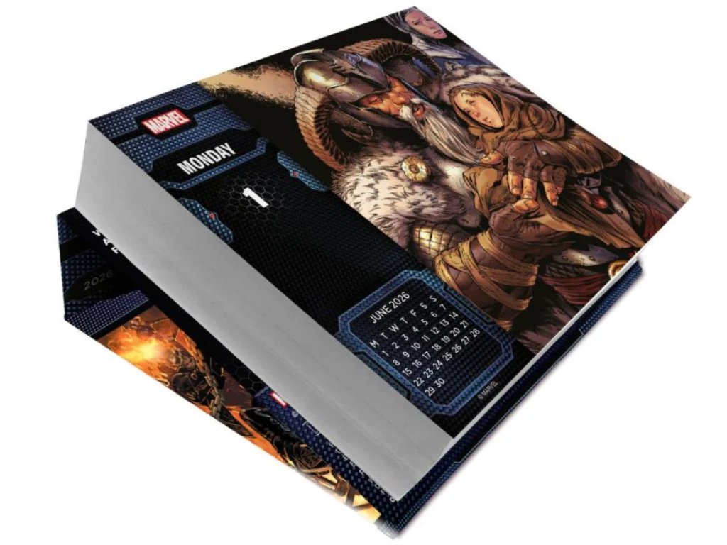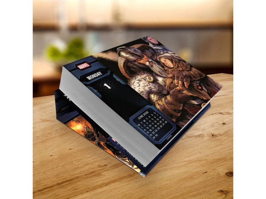 Oficiální produkt - denní stolní trhací kalendář na rok 2026 s grafikou a licencí populárních komiksových postav od studia Marvel Comics.