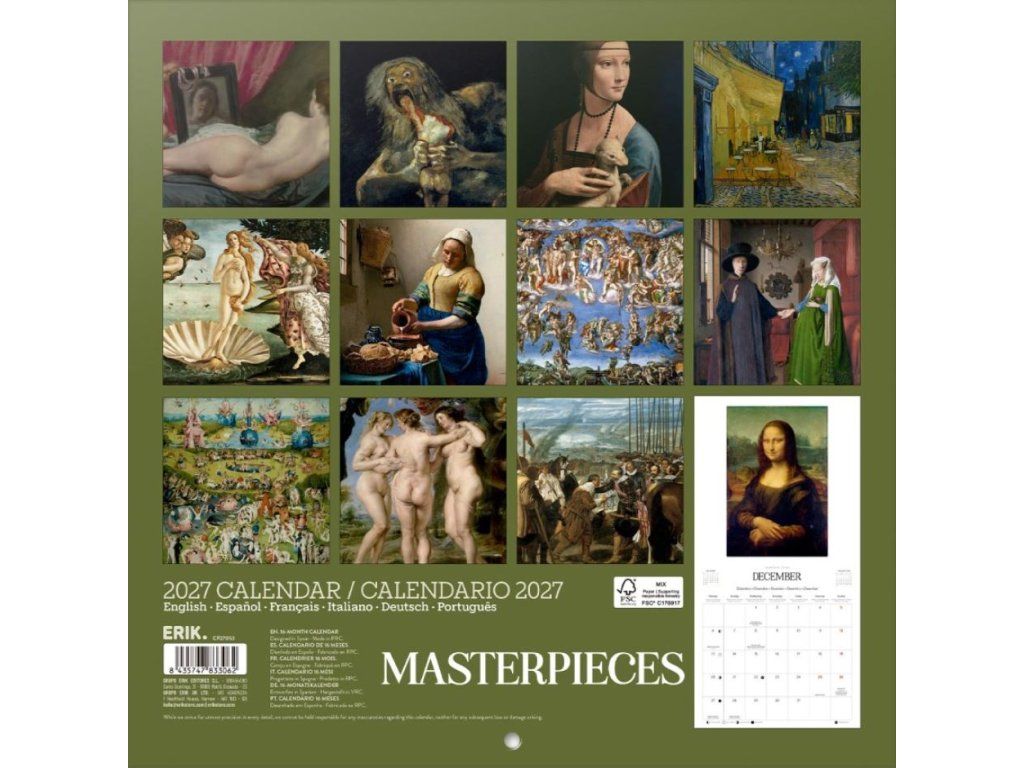 Oficiální produkt - šestnáctiměsíční nástěnný kalendář na rok 2027 s licencí na fotografie slavných obrazů.