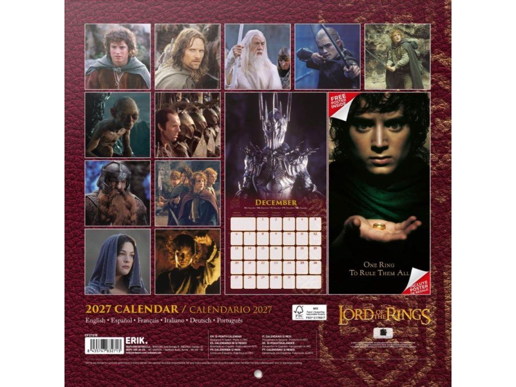 Oficiální produkt - nástěnný kalendář na 12 měsíců roku 2027 s licencí filmové ságy Pán Prstenů.