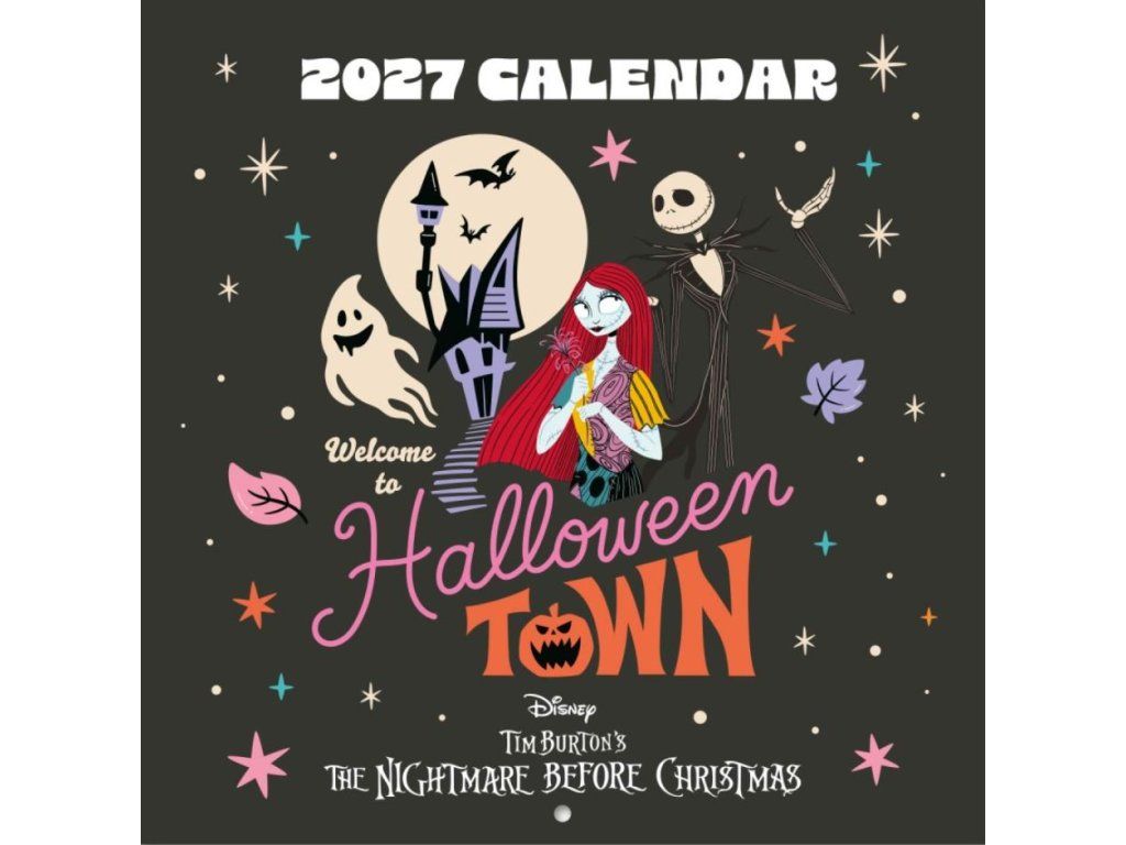 Oficiální nástěnný kalendář na rok 2027 z katalogu s grafikou a licencí amerického loutkového muzikálu The Nightmare Before Christmas (Ukradené Vánoce) od společnosti Disney.