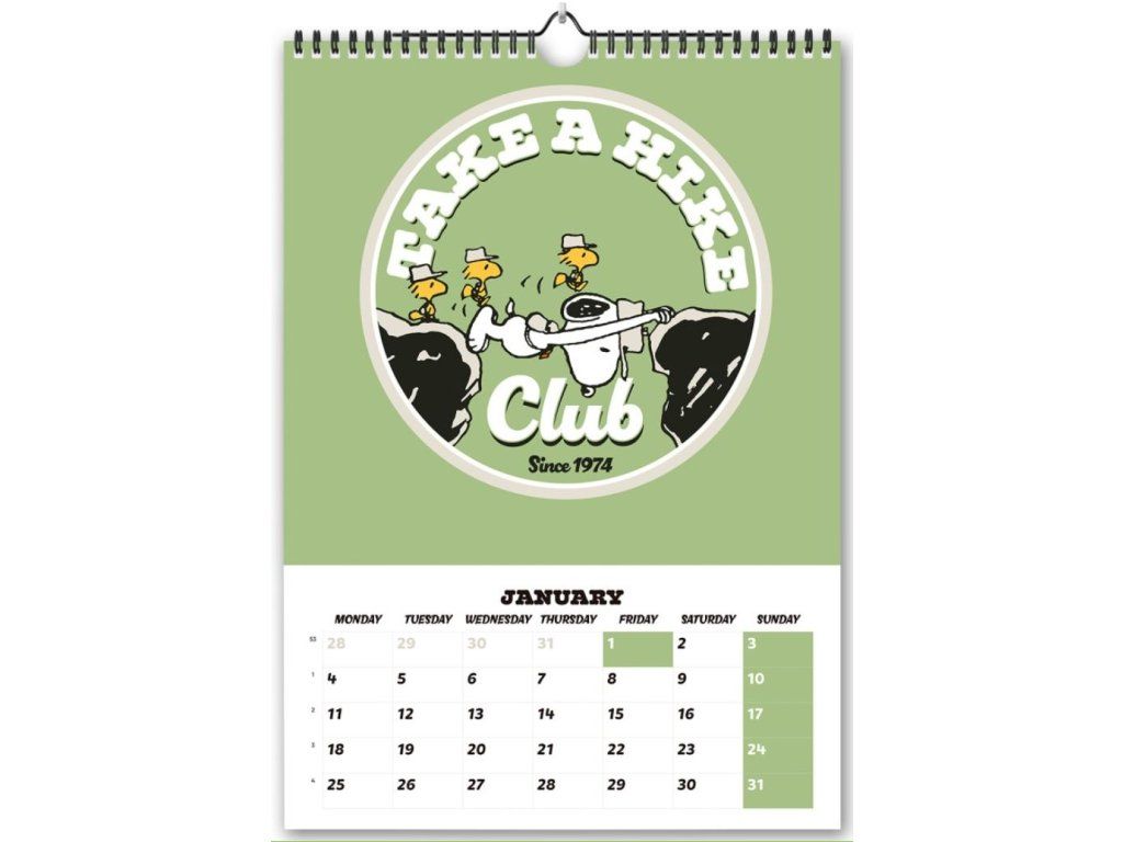 Dvanáctiměsíční nástěnný grafický kalendář ve formátu A3 (29,7 x 42 cm) s celkem 13 kreslenými obrázky a grafikami psa Snoopyho.