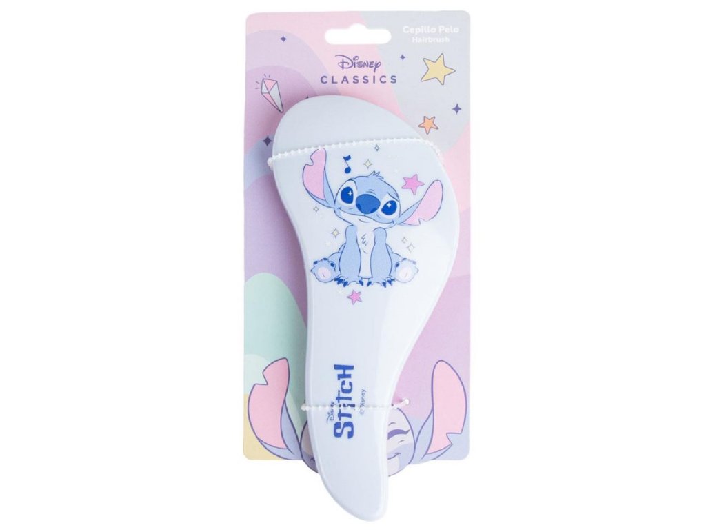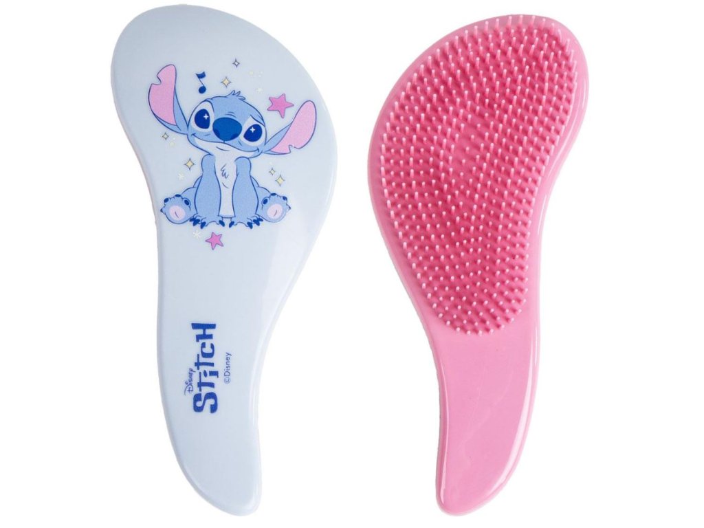 Modro-růžový kartáč na vlasy s grafikou sedícího Stitche z pohádky Lilo and Stitch. Rozčesejte své vlasy pohodlně s tímto designovým plastovým hřebenem. Kartáč je vhodný pro všechny menší i větší fanoušky i jako dárek.