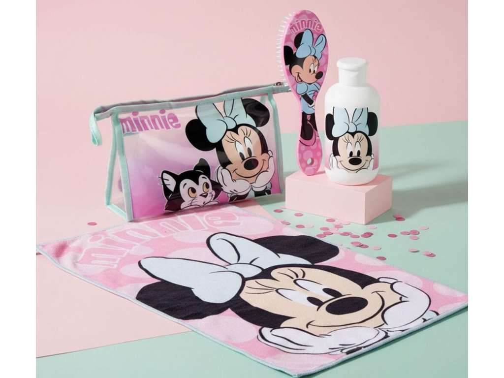 Roztomilý set kosmetických doplňků s motivem myšky Minnie potěší všechny malé i větší milovníky této ikonické postavičky. Jemné růžové provedení a jednotný design dělají z tohoto setu nejen praktického pomocníka, ale i stylový doplněk na cesty i doma. Set obsahuje hebký ručník, praktickou kosmetickou taštičku na zip, láhvičku na šampón, či opalovací krém a kartáč na vlasy, který je ideální pro každodenní úpravu vlasů. Vše je sladěno do hravého motivu oblíbené postavičky Minnie mouse.