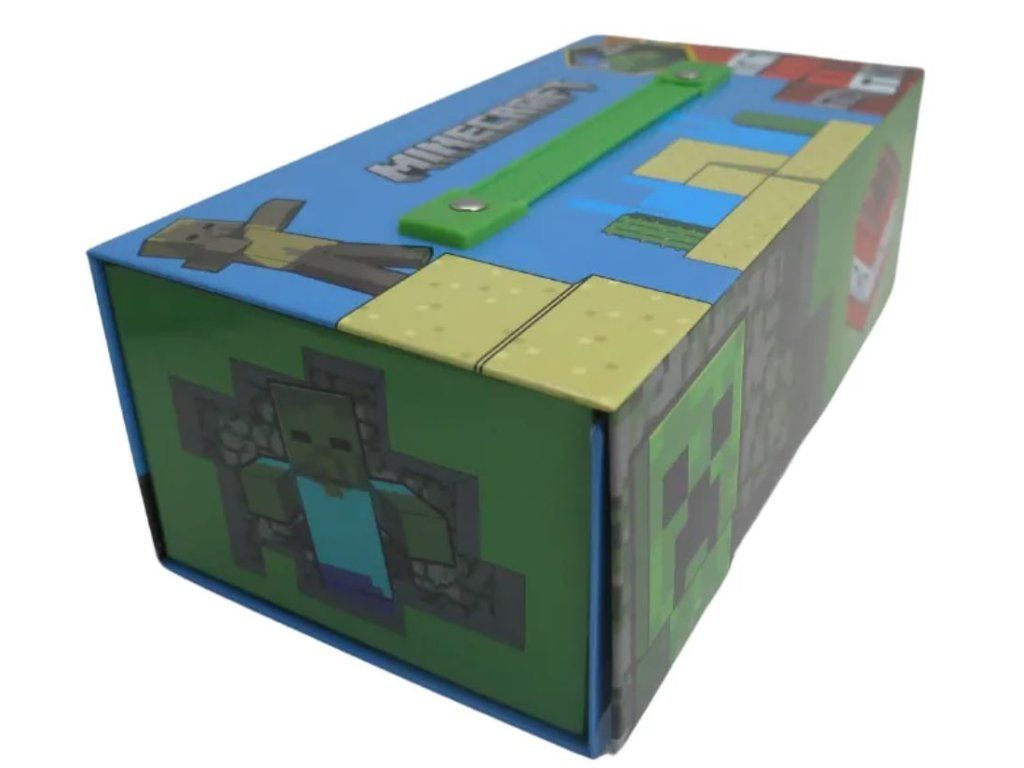 Kreativní kufřík s grafikou Creepera a bomby TNT, která udělá Boom z počítačové hry Minecraft.
