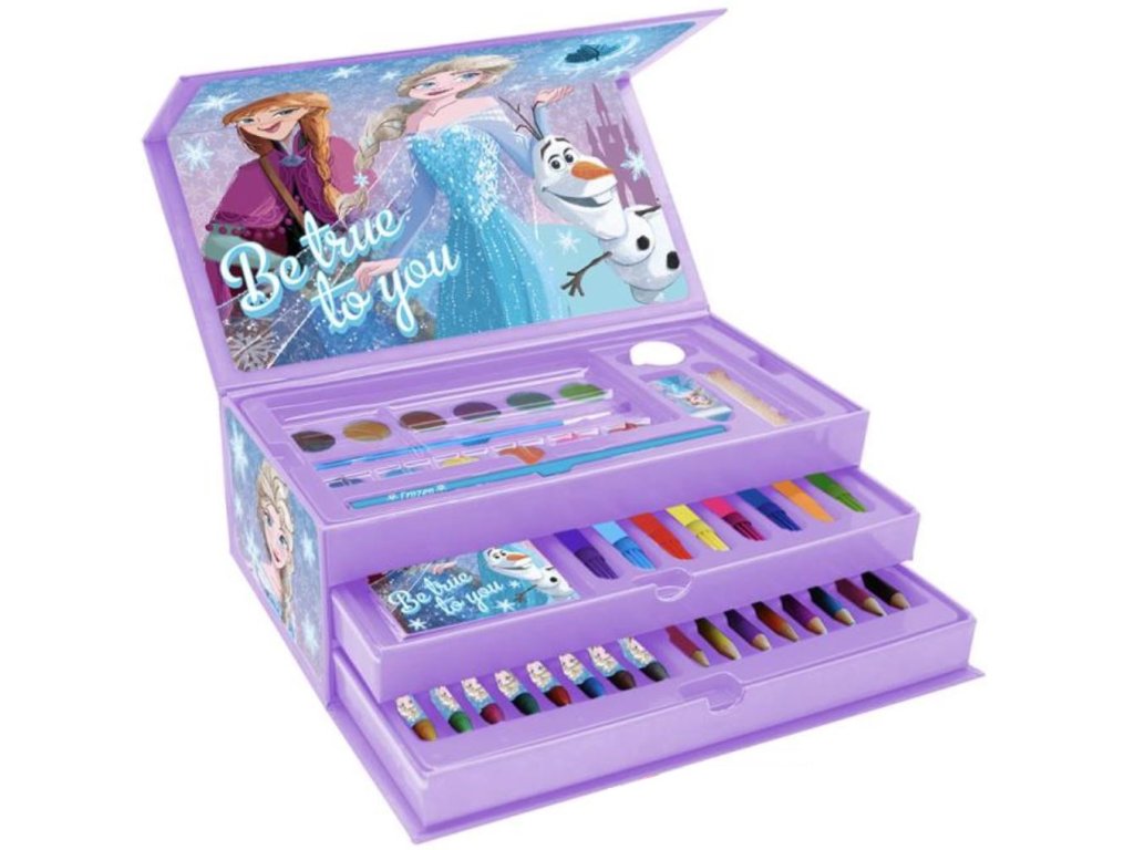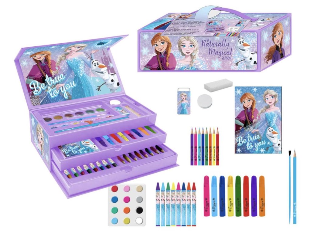 Kreativní kufřík s grafikou ledové královny Elsy a princezny Anny. Tento kufřík s výtvarnými potřebami je vhodný pro každého malého kreativního fanouška světa Ledové Království.