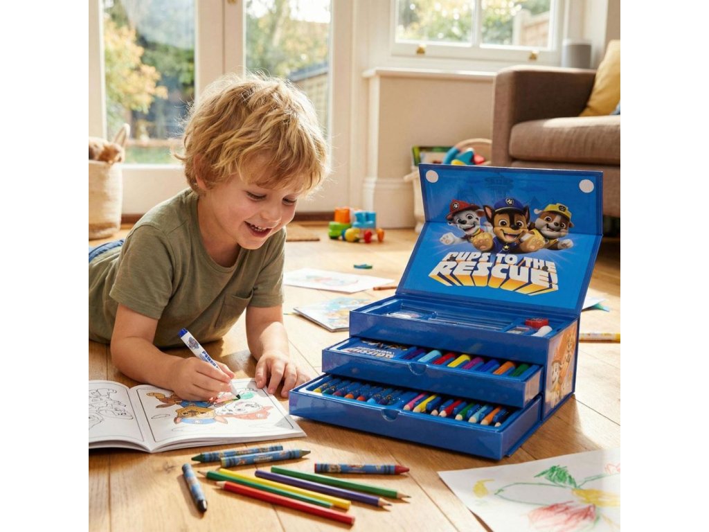 Kreativní kufřík s grafikou hlavních postaviček z pohádky Tlapková patrola. Sada je vhodným dárkem pro všechny fanoušky, kteří si chtějí rozvíjet svou kreativitu a umění.
