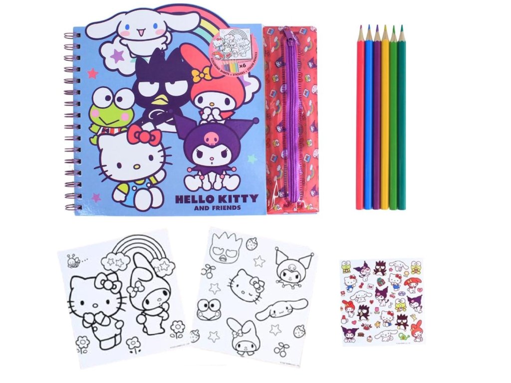 Kreativní sada omalovánek Hello Kitty potěší každého malého milovníka kreslení. Set obsahuje 30 archů omalovánek s oblíbenými postavičkami, 2 archy barevných samolepek pro ještě více zábavy a pouzdro se 6 pastelkami, které se snadno připevňuje pomocí dvou suchých zipů. Blok má pevné desky a praktickou kroužkovou vazbu, která umožňuje pohodlné listování. Ideální dárek pro děti, který podporuje kreativitu, jemnou motoriku a zabaví na dlouhé hodiny jak doma, tak na cestách.