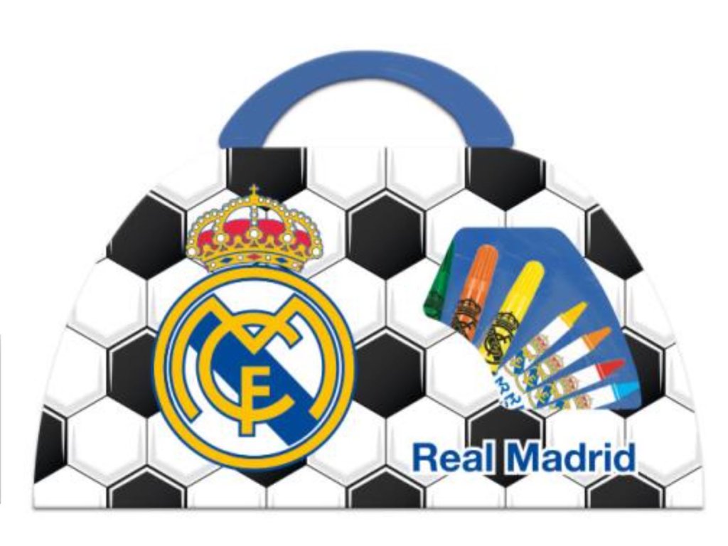 Kreativní kufřík s grafikou a logem FC Real Madrid. Zezadu vypadá set jako fotbalový balón. S tímto setem vám i fotbalista/fotbalistka dokáží vydržet u kreativních činností.
