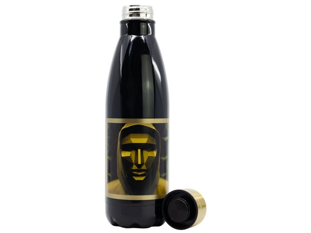 Oficiální produkt, láhev na pití z katalogu zboží s grafikou a licencí populárního korejského seriálu Squid Game (Hra na oliheň) od společnosti Netflix.