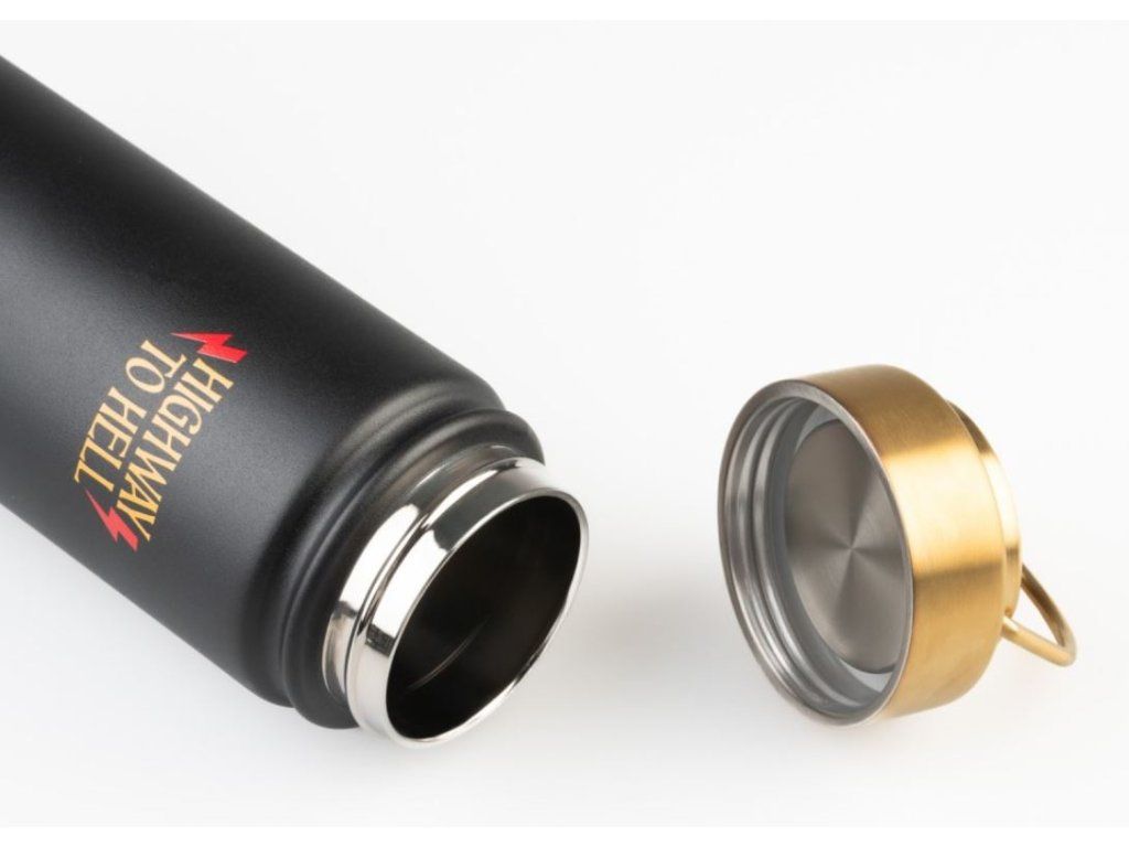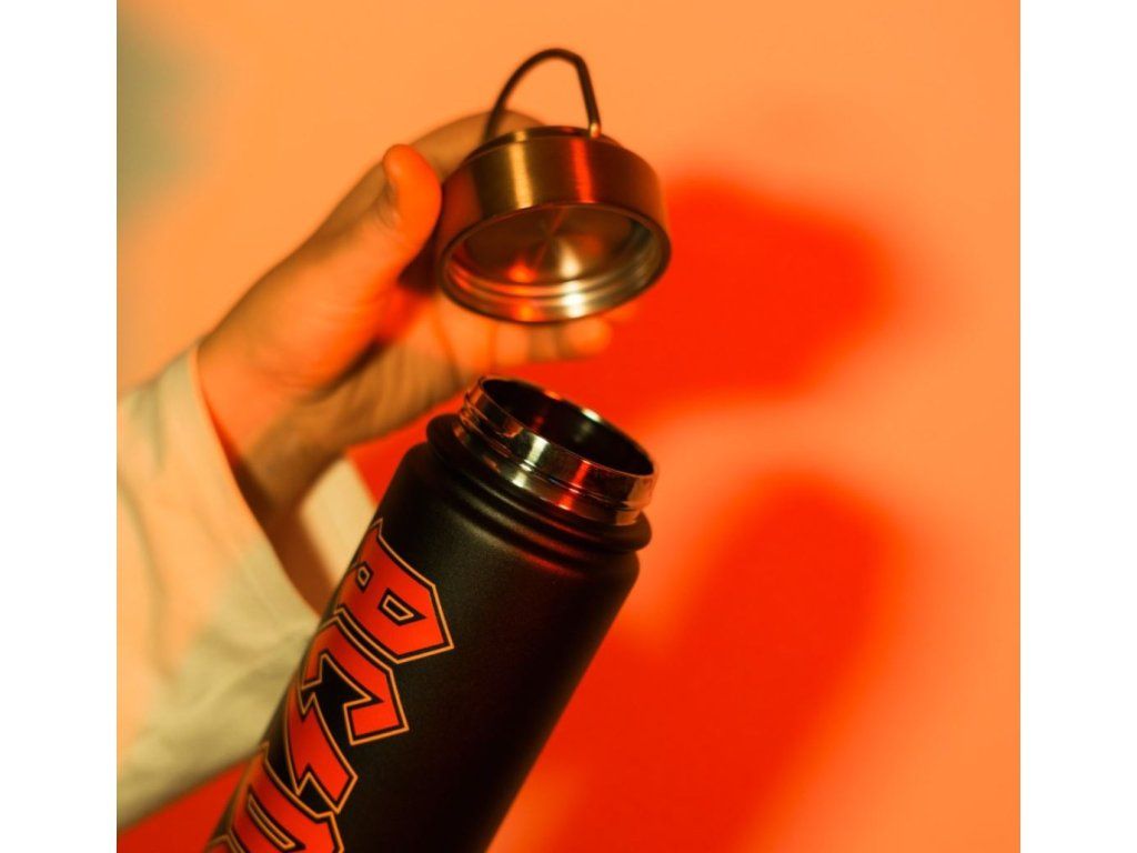 Vysoce kvalitní láhev z nerezové oceli se šroubovatelným víčkem s grafikou klasického loga AC/DC.. Láhev z nerezové oceli s dvojitou stěnou, která udrží nápoj horký po dobu 12 hodin a studený po dobu 24 hodin. Měří 21 cm na výšku a 7,3 cm v průměru a nabízí objem 500 ml. Součástí je vzduchotěsný uzávěr s rukojetí. Ideální dárek pro všechny hudební fanoušky na studené letní osvěžení nebo zimní zahřátí.
