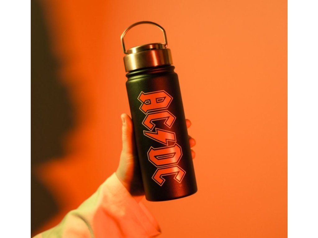 Oficiální produkt - nerezová láhev na pití z katalogu zboží s grafikou a licencí populární hudební kapely AC/DC.