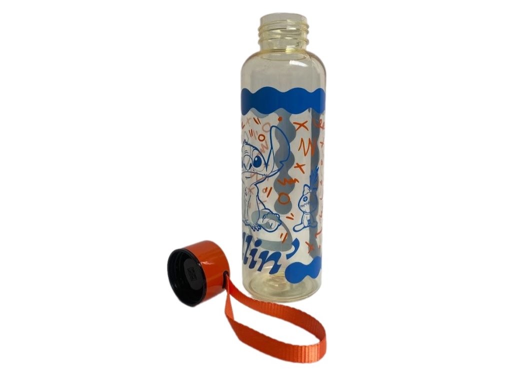 Plastová láhev na pití s víčkem a poutkem pro snadné nošení, vyvedená s grafikou roztomilé postavy Stitche. Láhev je vhodná pro všechny menší i větší fanoušky, kteří i venku chtějí mít svůj oblíbený seriál stále u sebe.