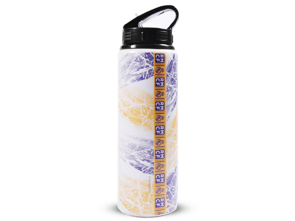 Tato HD potištěná hliníková láhev s lesklým bílým designem a královským znakem Realu Madrid. S modrým nápisem "Real Madrid" a zkratkou "RMCF" na druhé straně ukazuješ světu, komu fandíš - stylově a s hrdostí.