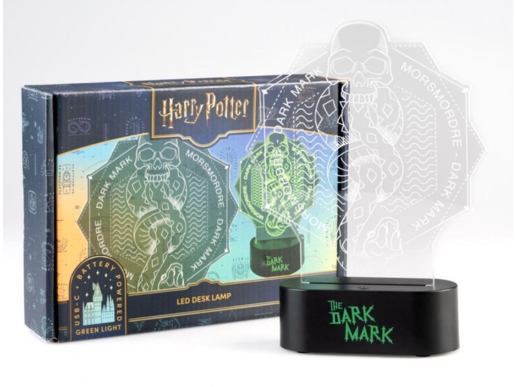 Plastová dekorativní lampička vyvedená v grafice znamení zla z populárního kouzelnického světa Harryho Pottera. Lampička je vhodná jako dekorativní osvětlení do jakéhokoliv pokoje. Svým jedinečným designem dodá pokoji ten správný šmrnc ve dne i v noci. Tato lampička udělá radost každému fanouškovi této kouzelnické ságy a rozhodně potěší i jako dárek.