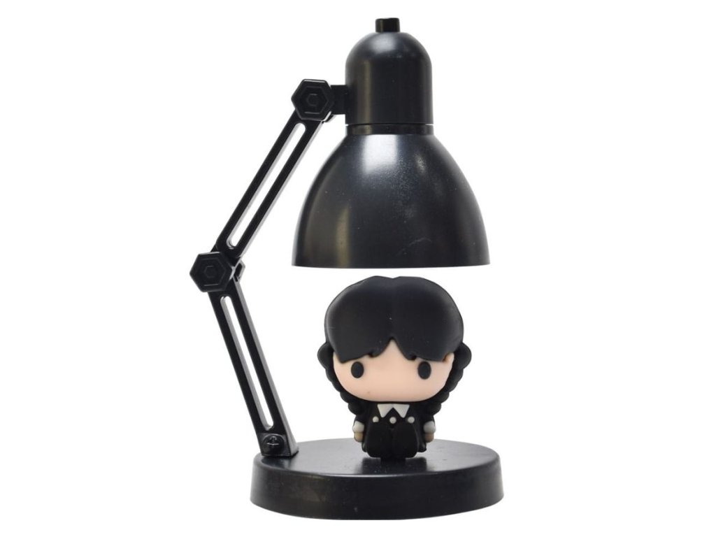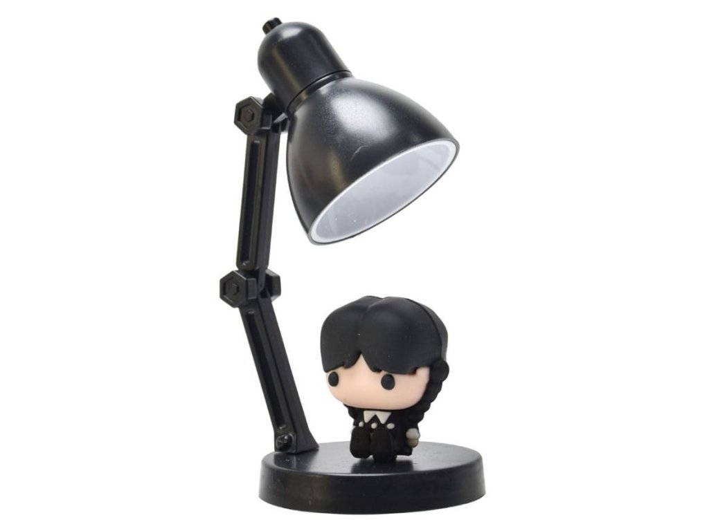 Kompaktní mini LED lampa s pohyblivou středovou figurkou a nastavitelnou hlavou. Na podstavci je vyobrazena Wednesday Addamsová v chibi stylu, která rozzáří každý stůl.