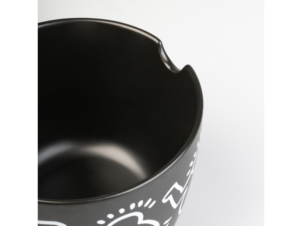 Miska na ramen s hůlkami vyvedená v grafice uměleckého díla od známého amerického umělce Keitha Haringa. Dekorační miska má kapacitu 600 ml a je vyrobena z keramiky. Tato atraktivní miska na ramen rozhodně zaujme vaše kolegy v práci při obědové pauze, či vaše přátelé při servírování například popcornu při návštěvě.