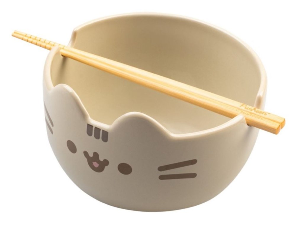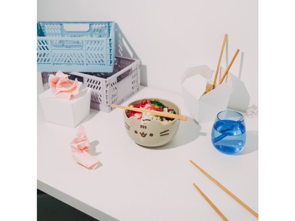 Miska na ramen s hůlkami vyvedená v grafice roztomilé tváře kočičky Pusheen. Dekorační miska má kapacitu 900 ml a je vyrobena z kameniny. Tato atraktivní miska na ramen rozhodně zaujme vaše kolegy v práci při obědové pauze, či vaše přátelé při servírování například popcornu při návštěvě.