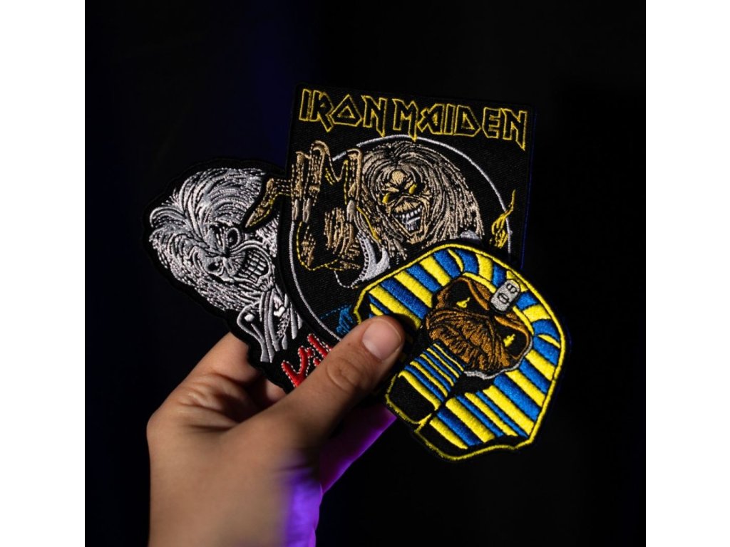 Set 3 kusů tradičních textilních nášivek s hudebním motivem skupiny Iron Maiden. Těmito designovými nášivkami si můžete dozdobit třeba tašku, či bundu, ale i všchno co vás jen napadne. Vhodné pro všechny fanoušky co mají rádi detaily vyvedené podle své oblíbené hudební skupiny.