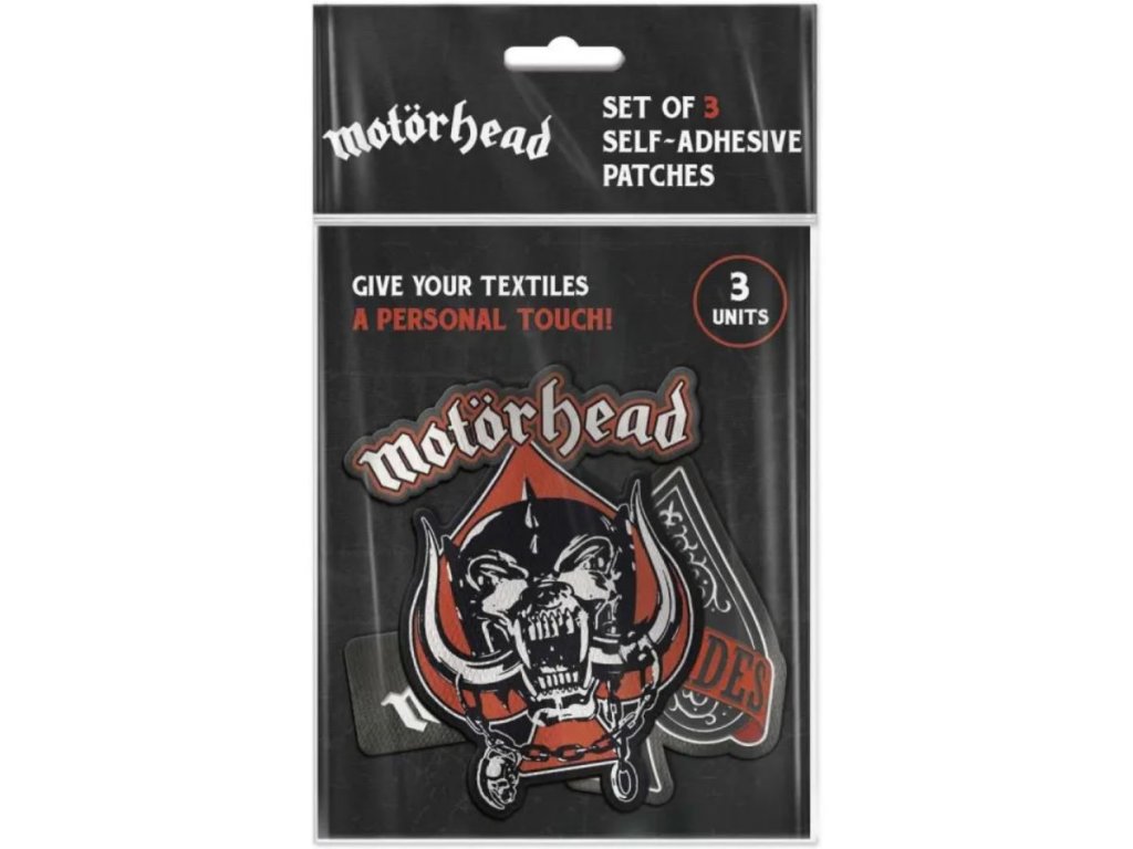Set 3 kusů tradičních textilních nášivek s hudebním motivem skupiny Motorhead. Těmito designovými nášivkami si můžete dozdobit třeba tašku, či bundu, ale i všchno co vás jen napadne. Vhodné pro všechny fanoušky co mají rádi detaily vyvedené podle své oblíbené hudební skupiny.