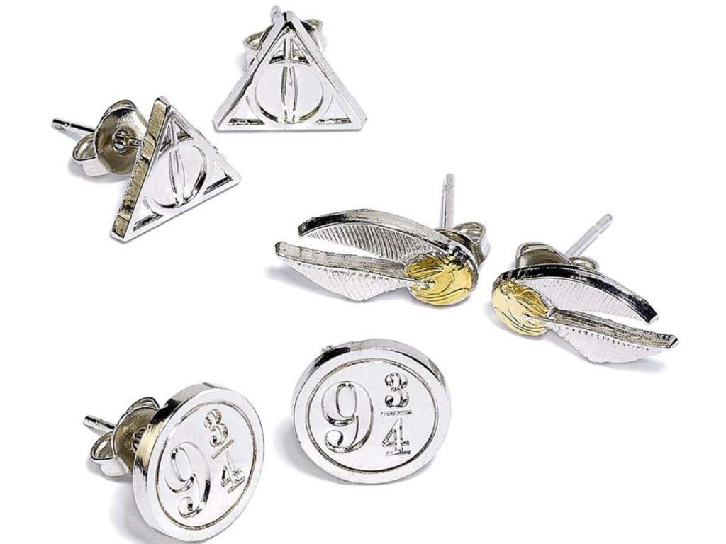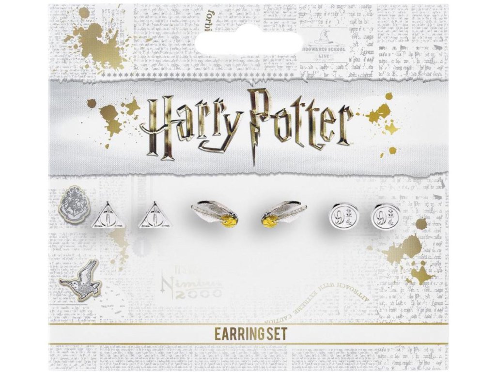 Oficiální produkt - set náušnic z katalogu módního a doplňkového zboží s logem a grafikou filmové a knižní sci-fi kouzelnické ságy Harry Potter.