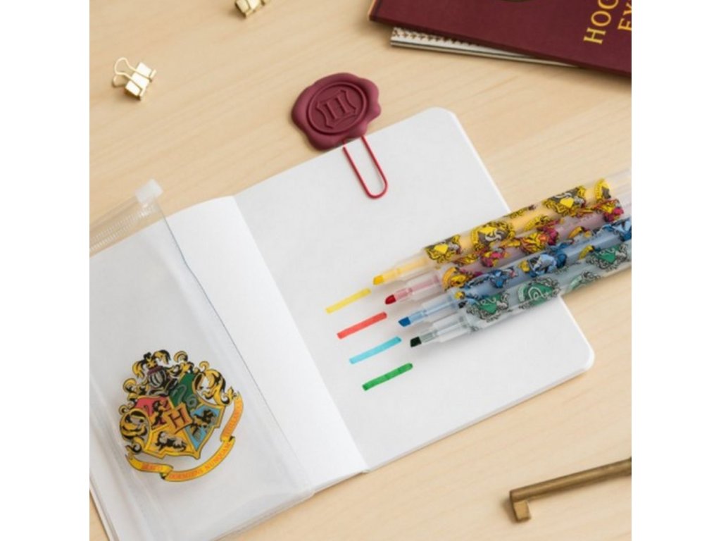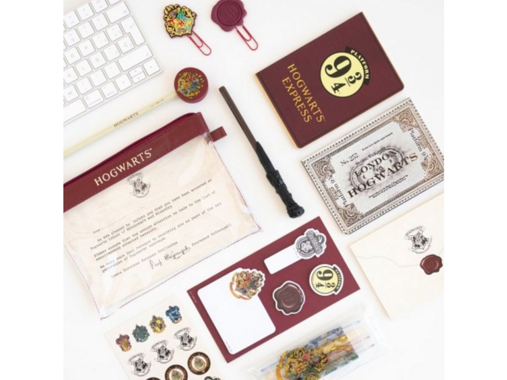 Oficiální produkt - set papírnických pomůcek z katalogu zboží s licencí a grafikou populární filmové a knižní ságy Harry Potter.