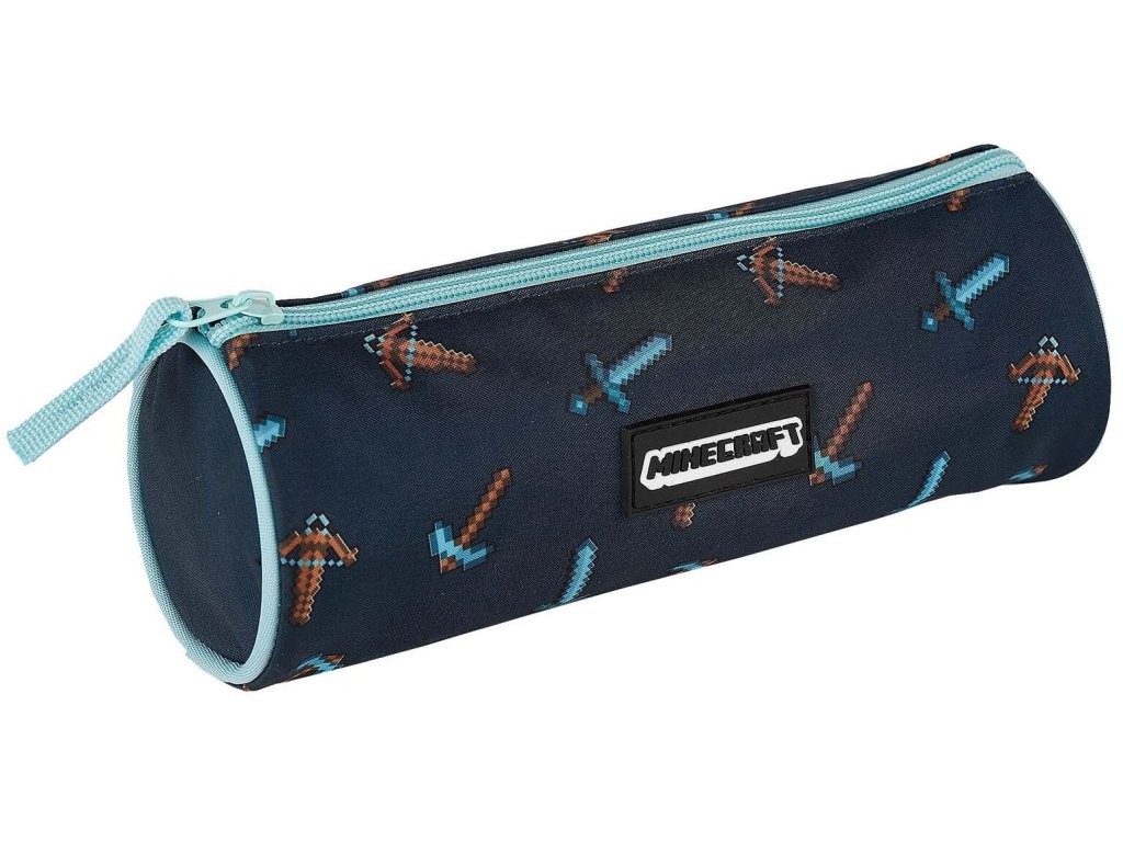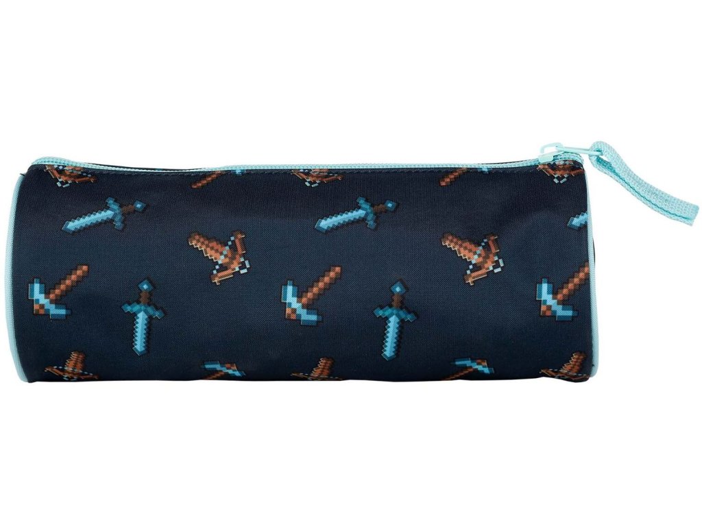 Penál na tužky v modré barvě ve tvaru barelu vyvedený v motivu hry Minecraft. Zapínání je na zip.