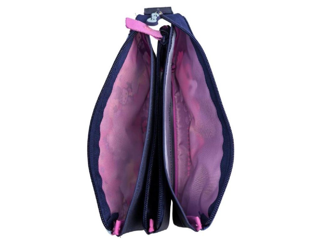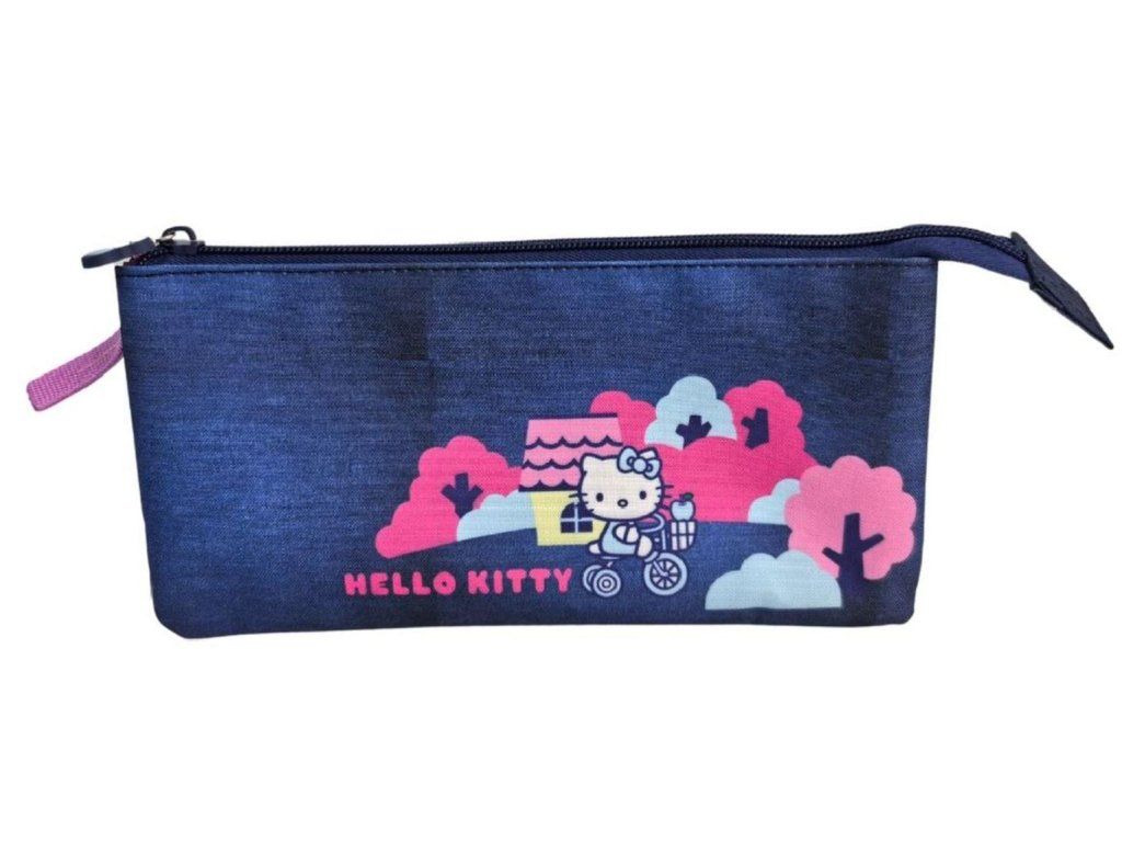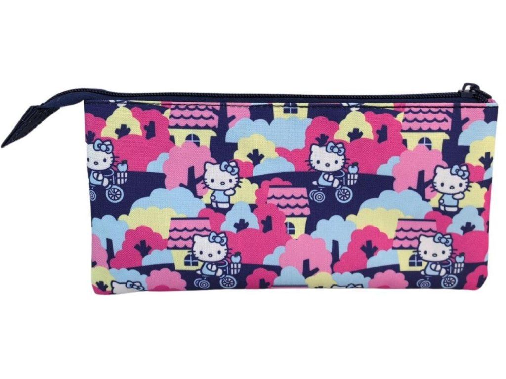 Praktický školní penál se třemi přihrádkami v designu oblíbené kočky Hello Kitty. Nabízí plně podšitý a personalizovaný vnitřek, kvalitní zpracování a odolné zipy. Vyrobeno z příjemného, prodyšného a odolného polyesteru. Penál je pevný, prostorný a ideální pro každodenní použití.