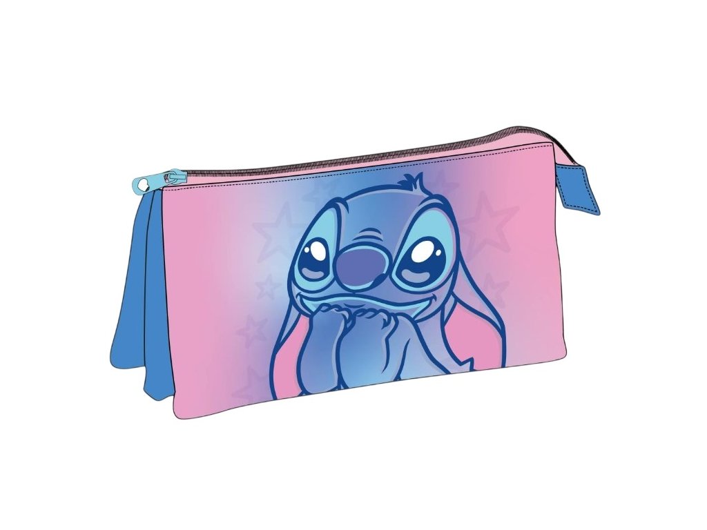 Dopřejte svému malému školákovi pořádnou dávku stylu s tímto růžovo-modrým penálem v designu oblíbeného mimozemšťana Stitche. Díky třem samostatným kapsám na zip už nebude hledání oblíbené pastelky žádný problém. Penál je vyroben z odolného polyesteru, takže zvládne každodenní školní dobrodružství. Skvěle poslouží nejen na psací potřeby, ale i jako praktická kosmetická taštička na drobnosti. Ideální dárek pro každého fanouška pohádky Lilo a Stitch.