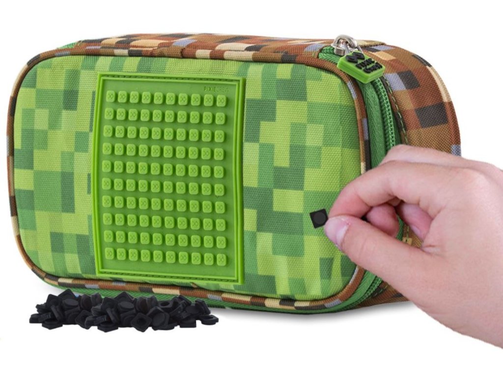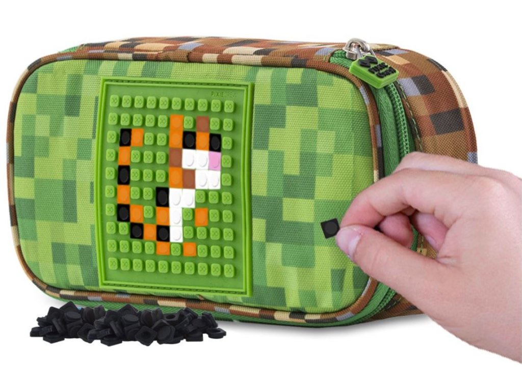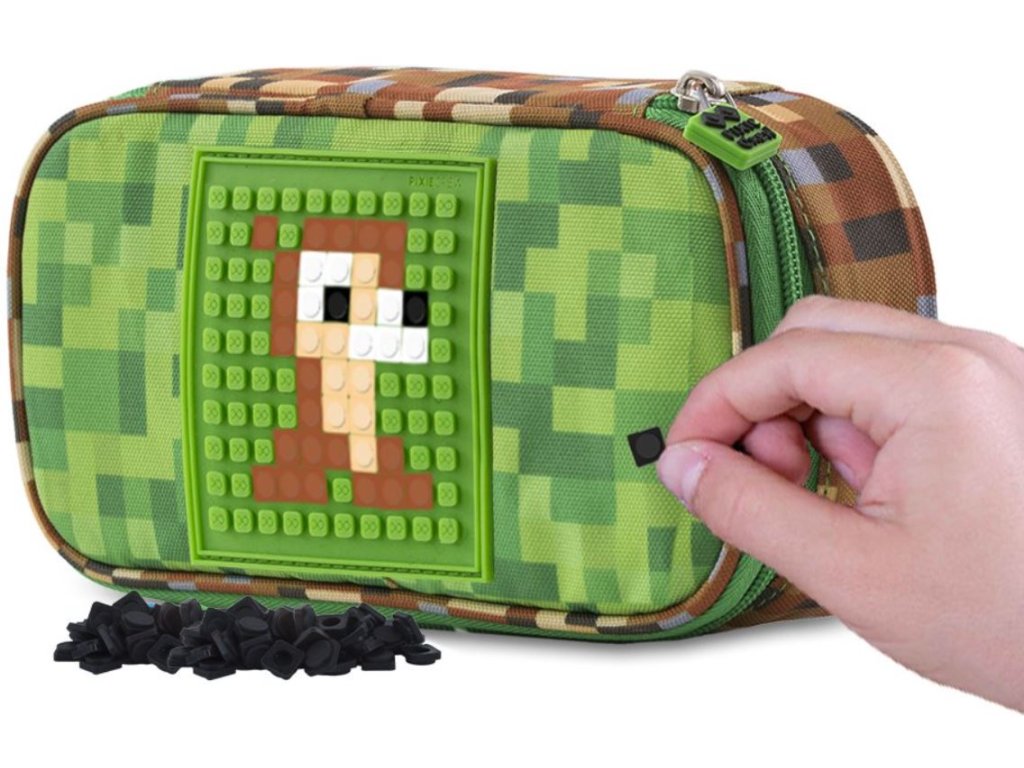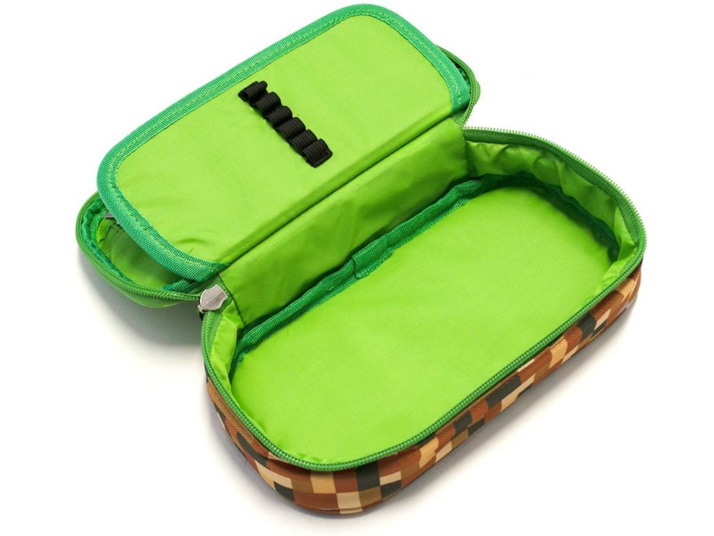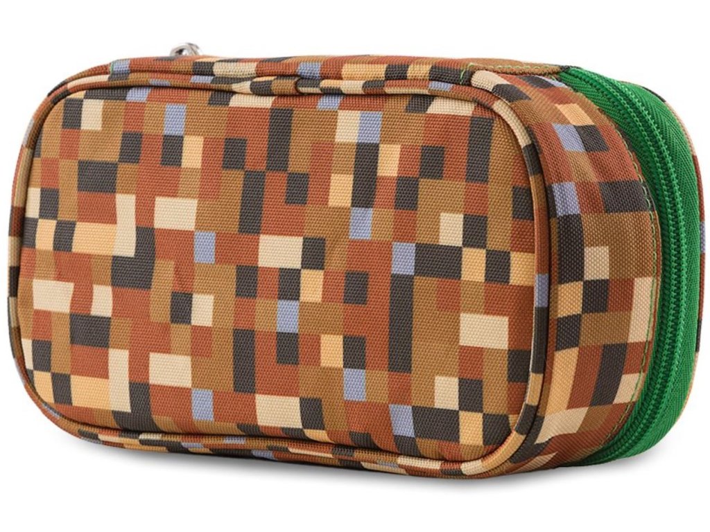 Prostorný penál s motivy našeho bestselleru zeleno-hnědé kostky připomínající světoznámou počítačovou hru Minecraft, vyrobený z polyesteru v kombinaci se silikonem ocení spíše starší školáci.