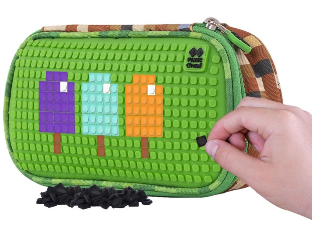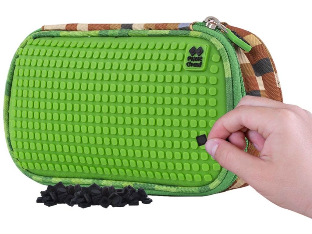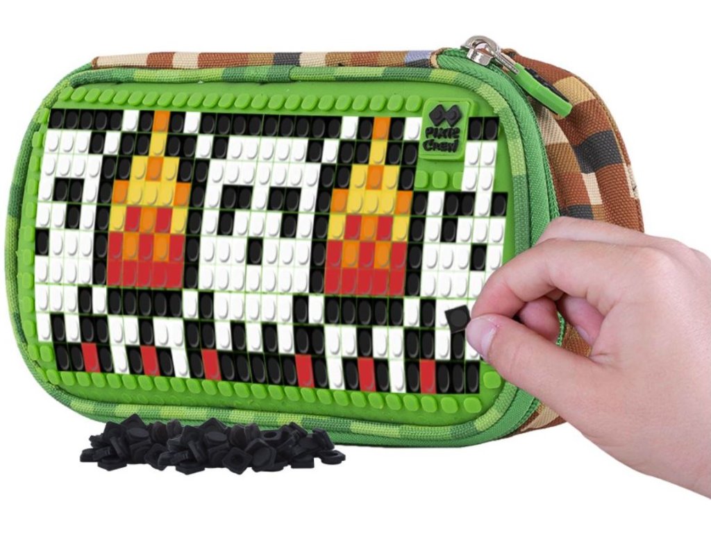 Na přední straně je umístěn unikátní silikonový PIXIE CREW creative panel TM zelené barvy. K dispozici máte 448 bodů pro nekonečné množství motivů na každý den díky PIXIES (pixelům), které můžete kdykoli sundat a vyměnit za jiné.