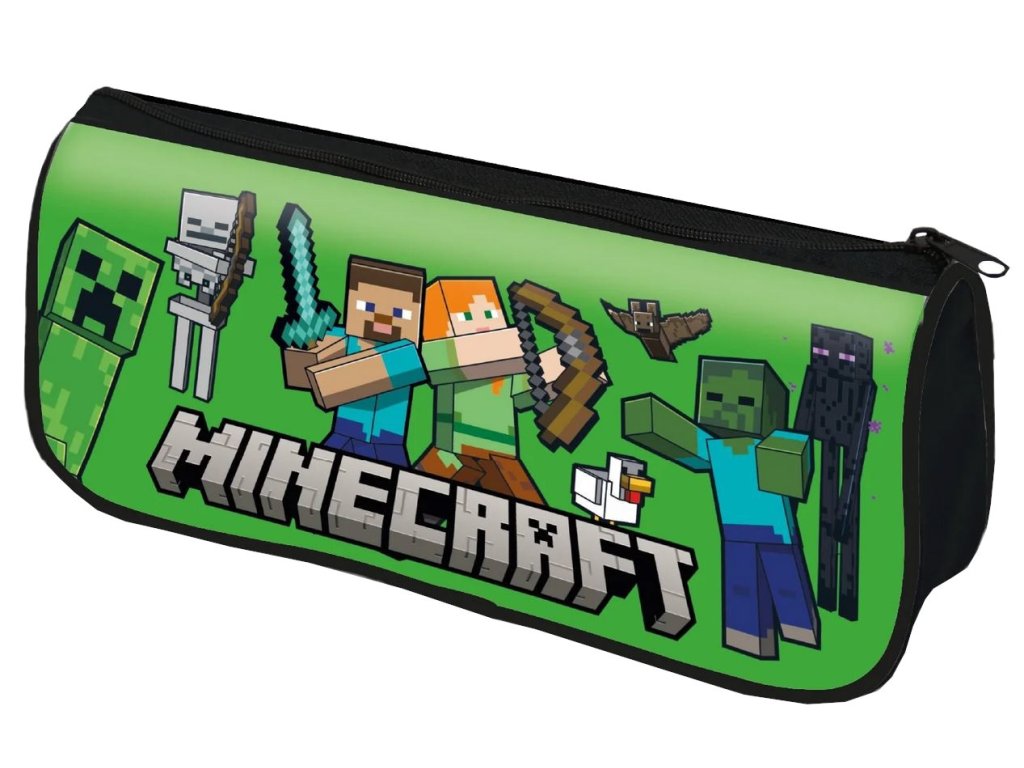 Zeleno-černý penál na tužky vyvedený s grafikou postav z počítačové hry Minecraft. Zapínání pouzdra je na zip. Penál je vhodný pro všechny fanoušky, kteří chtějí mít své školní pomůcky uložené ve stylu počítačové hry Minecraft.