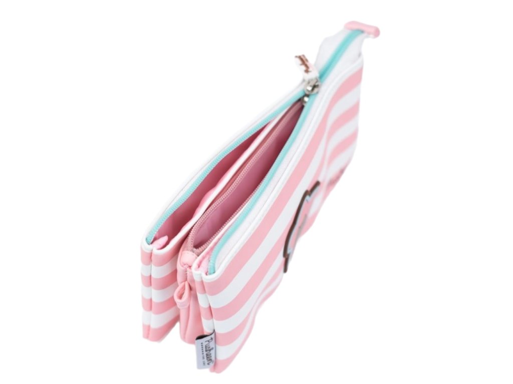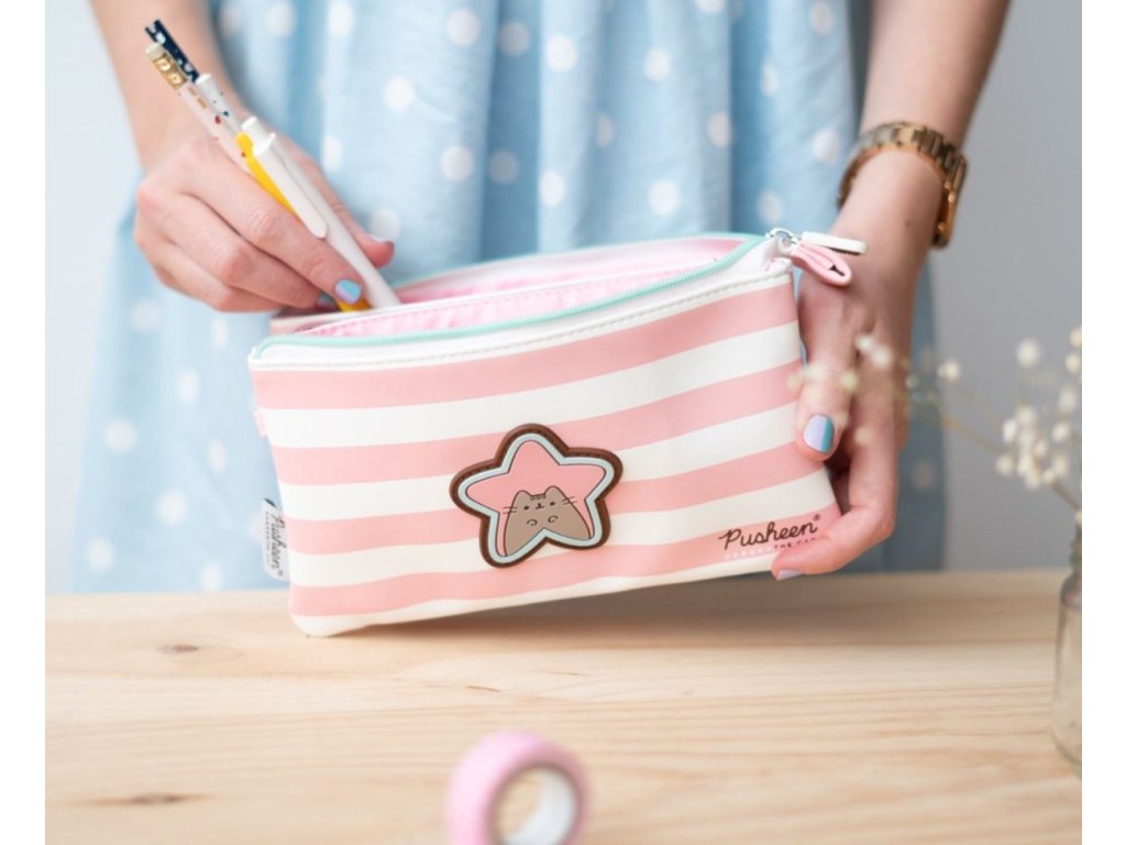 Penál na tužky inspirovaný oblíbenou kočkou Pusheen. Penál disponuje 3 kapsami, z nichž prostřední má svůj vlastní zip. Všechny kapsy pak lze uzavřít jedním hlavním zipem s personalizovaným přívěškem. Penál lze použít i jako kosmetickou tašku, má tak více využití a je vhodný i jako dárek pro všechny fanoušky této roztomilé kočičky Pusheen.