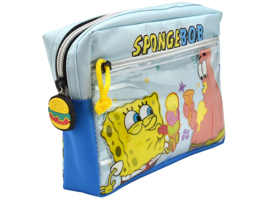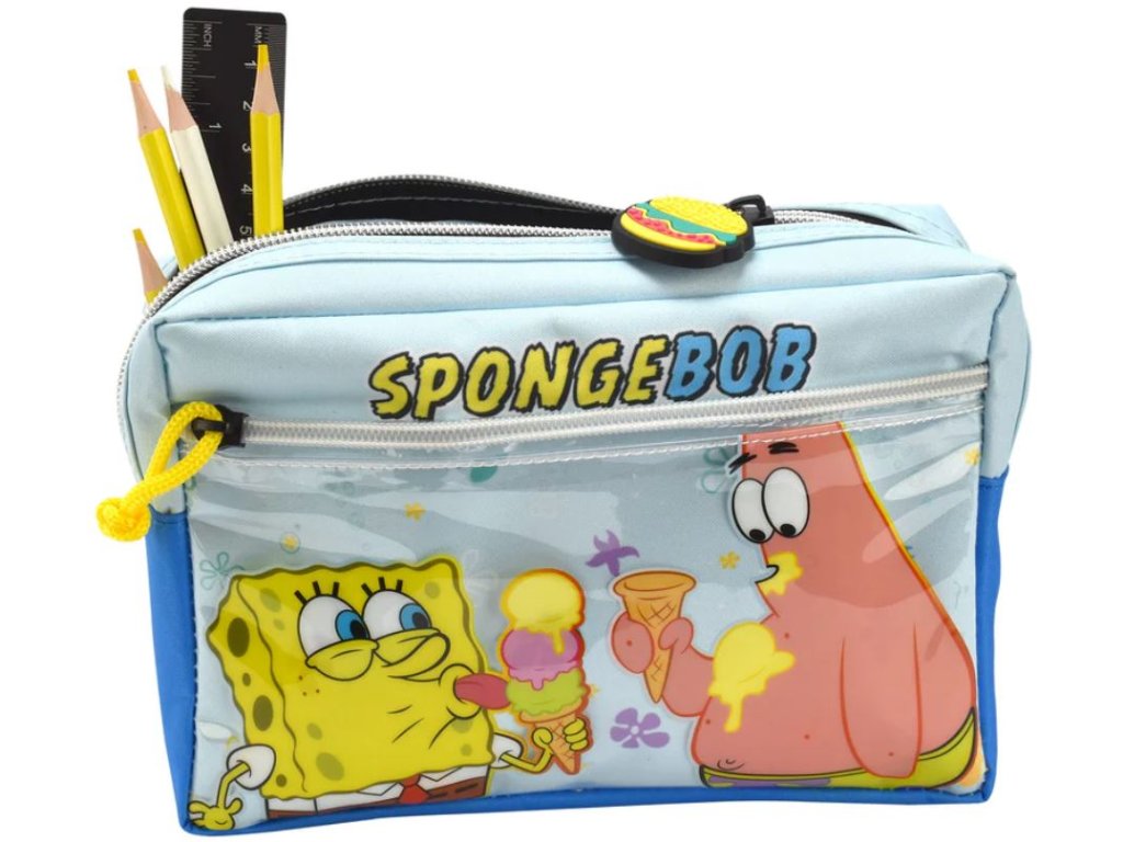 Prvotřídní větší pouzdro na tužky vyrobené z vysoce kvalitního nylonu. Vyvedený s motivem postavičky Spongebob. Obsahuje dvě přihrádky na zip.