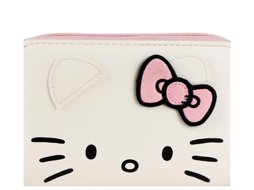 Stylová peněženka Hello Kitty spojuje roztomilost s rebelským šmrncem. Tato praktická peněženka s růžovým vnějším zipem a designovými 3D detaily je ideální pro všechny fanoušky, kteří se nebojí ukázat svou závislost na této kreslené kočičce.