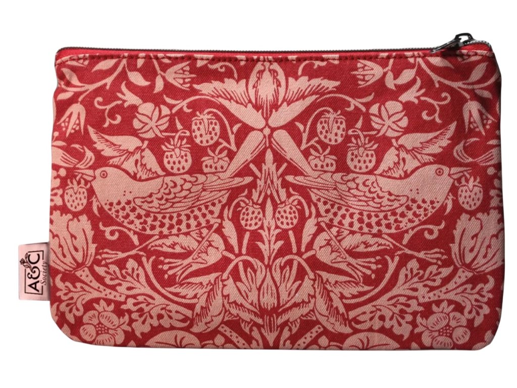 Elegantní bavlněná peněženka na mince zdobená bohatým přírodním motivem inspirovaným tvorbou Williama Morrise. Červený podklad doplňuje světlý, ale výrazný dekor s ptáky, květinami a rostlinnými ornamenty, který peněžence dodává jedinečný umělecký vzhled. Peněženka má zapínání na zip a je vyrobena z kvalitní bavlny, která je odolná, lehká a ideální pro každodenní použití - do práce, do školy i na výlety.