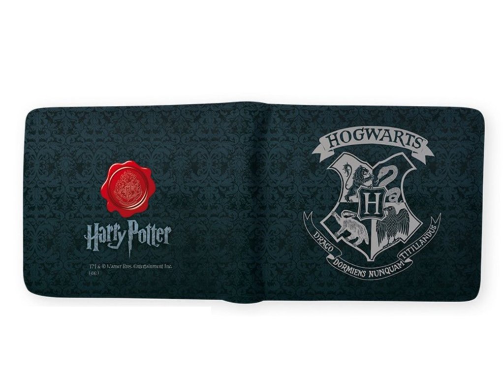 Atraktivní peněženka s logem školy čar a kouzel v Bradavicích. Peněženka má vnitřní menší kapsu na mince a větší na bankovky. Obsahuje také přihrádky na bankovní karty s jednou transparentní přihrádkou například na foto vašeho oblíbeného kouzelnického hrdiny. Tato peněženka je slušivým doplňkem a nesmí tak chybět žádnému fanouškovi této kouzelnické ságy světa Harryho Pottera.