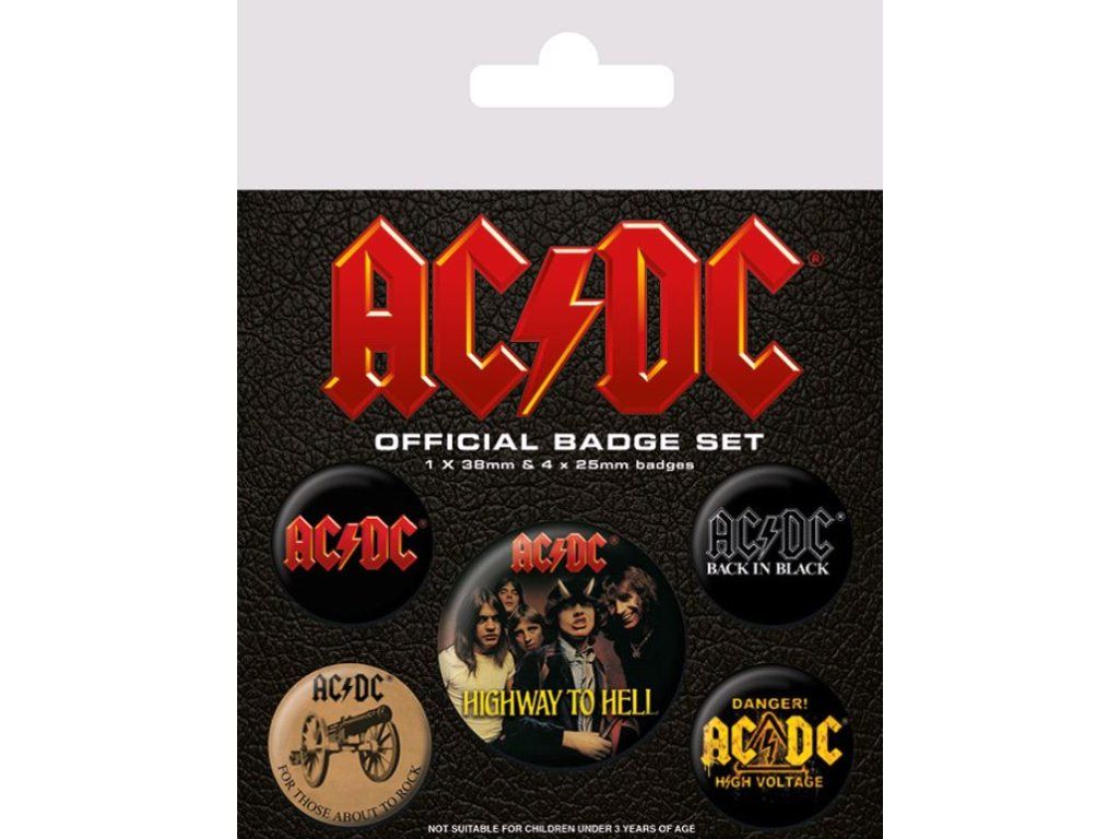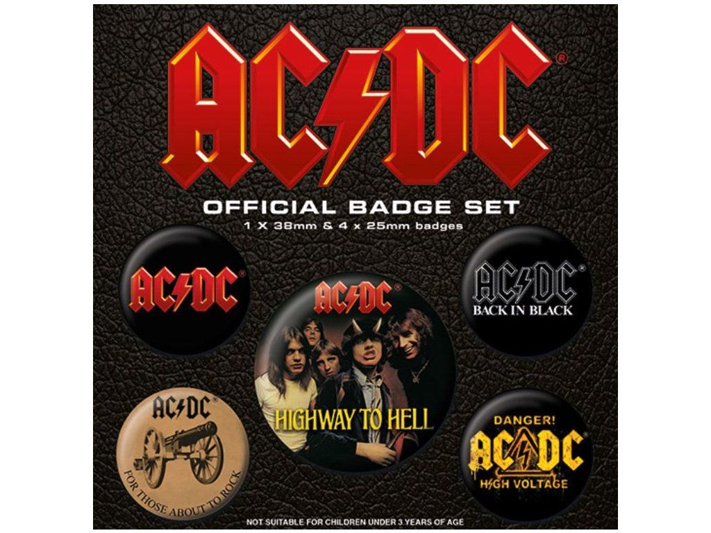 Set pěti kusů placek s grafikou hard-rockové skupiny AC/DC.