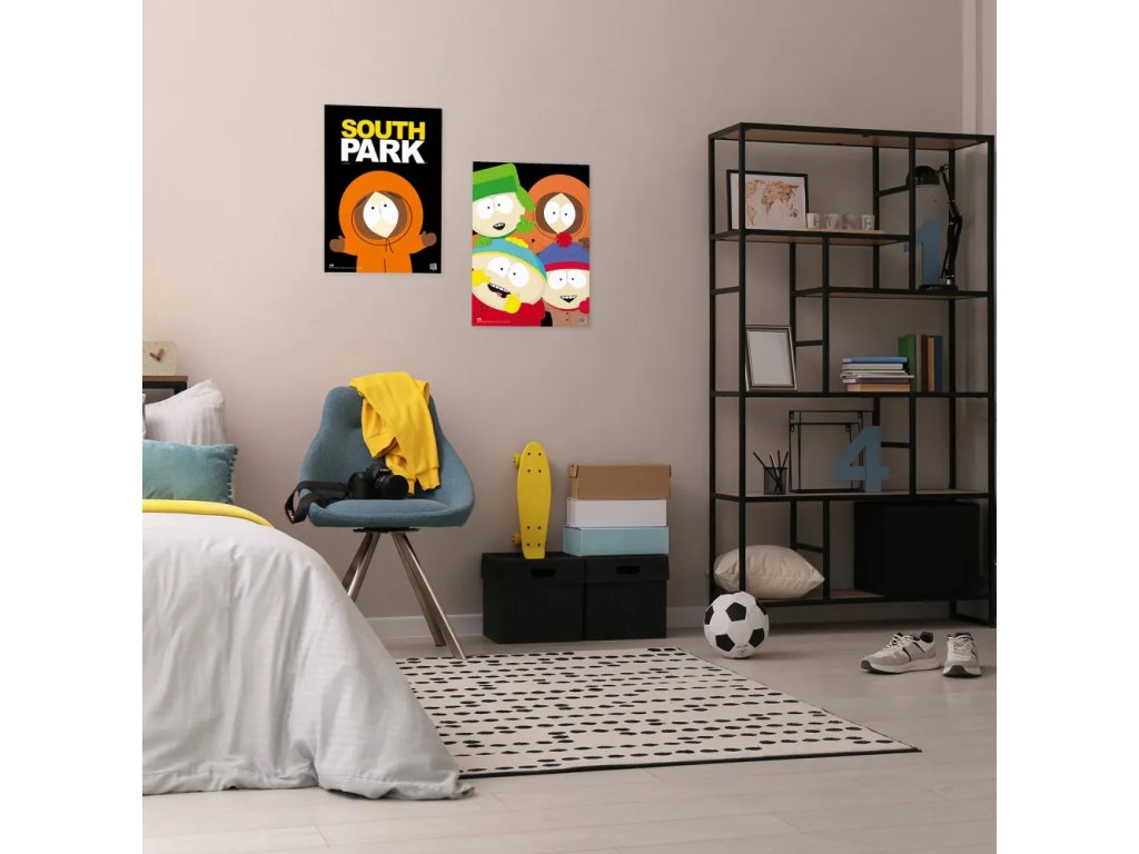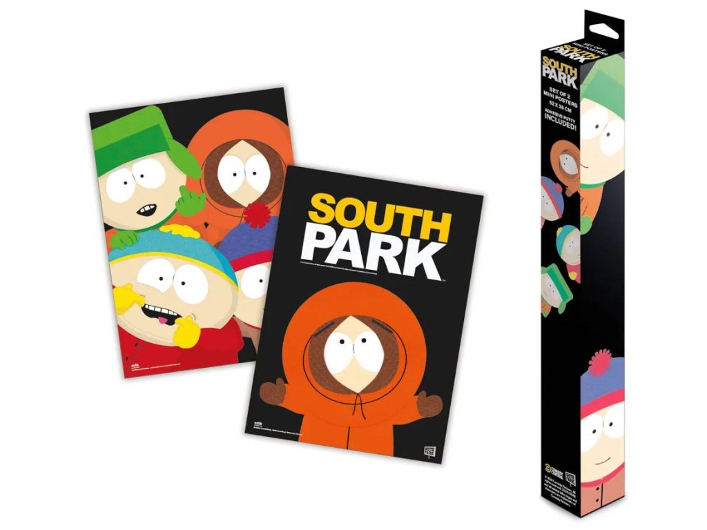 Set 2 vysoce kvalitně potištěných plakátů s grafikou postav z legendárního seriálu South Park. Balení obsahuje 8 kusů lepicího tmelu a dodává se v obdélníkové krabičce. Plakáty se skvěle hodí všem fanouškům do svých pokojíčků.