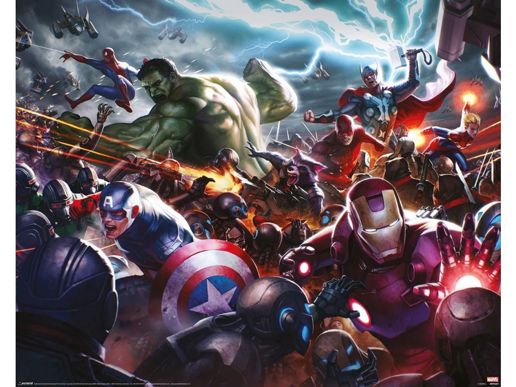 Plakát ve formátu 40 x 50 cm s grafikou superhrdinského útoku Avengers od společnosti Marvel. Plakát se hodí jako výzdoba každého pokoje pro všechny menší i větší fanoušky.