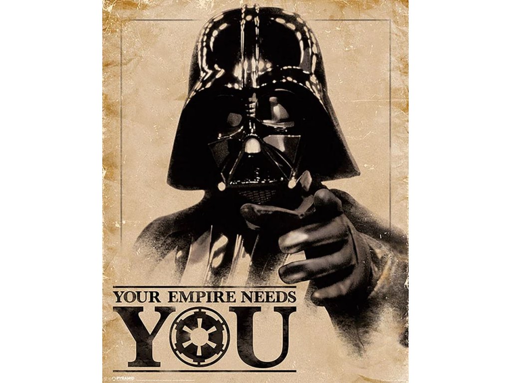 Plakát ve formátu 40 x 50 cm s grafikou a nápisem: ,,Your Empire needs you'' z multimediální franšízy Star Wars (Hvězdné války). Plakát se hodí jako výzdoba každého pokoje pro všechny menší i větší fanoušky.