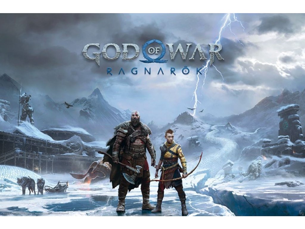 Plakát ke hře God of War Ragnarok zachycuje epickou atmosféru severské mytologie a drsnou krásu zasněžené krajiny. Hlavní postavy, Kratos a Atreus, jsou připraveni čelit novým výzvám, což slibuje nezapomenutelné dobrodružství. Ideální dekorace pro všechny fanoušky akčních her a epických příběhů.
