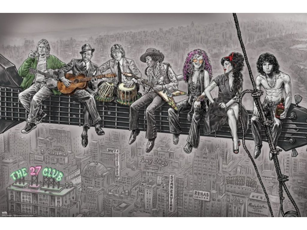 Plakát s vyobrazením známých zpěváků a zpěvaček s označením The 27 Club, což je neformální označení skupiny celebrit, jejíchž život skončil předčastně. Plakát si můžete zarámovat a vytvořit si tak originální obraz, případně volně pověsit na zeď, skříň, dveře, prostě kdekoliv vás napadne. Plakát je vhodným doplňkem pokoje či jiné místnosti každého fanouška těchto známých zpěváků a zpěvaček.