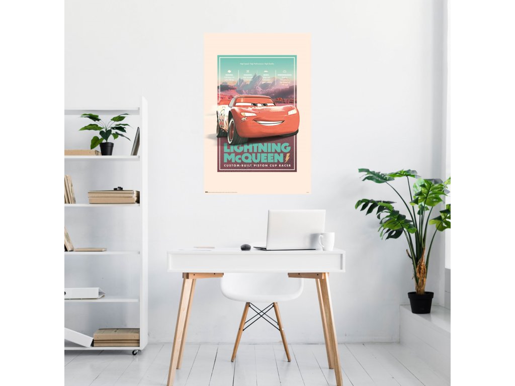 Plakát s motivem oblíbeného závodního hrdiny Bleska McQueena z animovaného filmu Auta potěší každého malého i velkého fanouška. Plakát si můžete zarámovat a vytvořit si tak originální stylový obraz, případně volně pověsit na zeď, skříň, dveře, prostě kdekoliv vás napadne. Skvěle oživí dětský pokoj i jakoukoli jinou místnost a dodá jí hravou atmosféru.