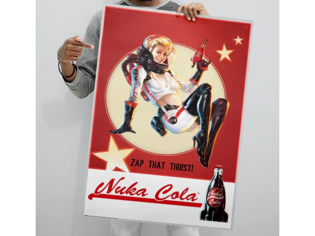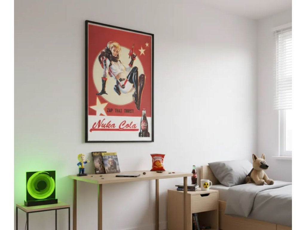 Umělecký plakát s grafikou postavy a značky Nuka Cola ze série her Fallout. Plakát si můžete zarámovat a vytvořit si tak originální obraz, případně volně pověsit na zeď, skříň, dveře, prostě kdekoliv vás napadne. Plakát je vhodným doplňkem pokoje každého menšího i většího fanouška.