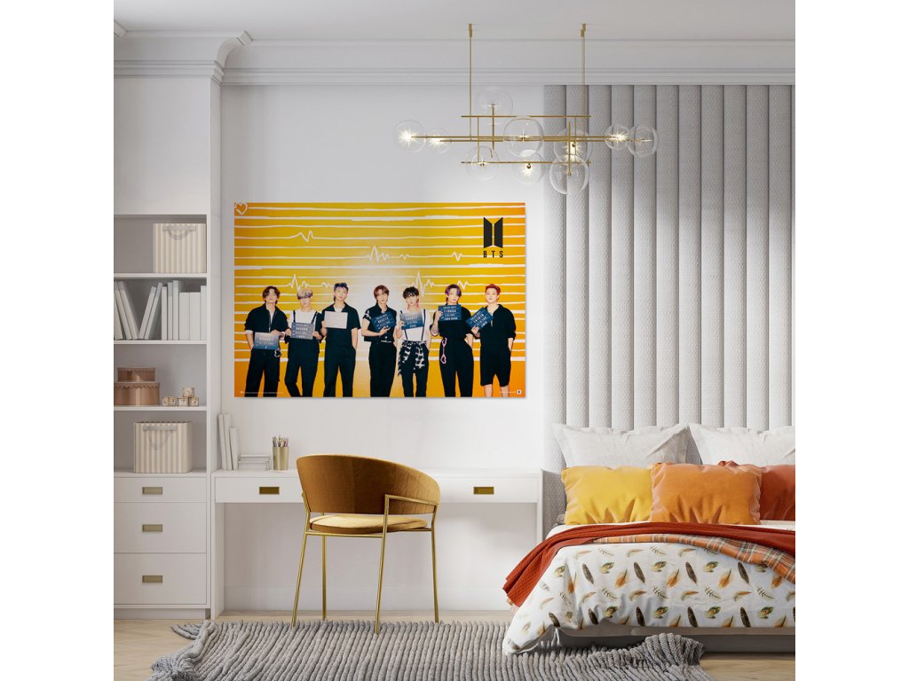 Oficiální plakát z katalogu zboží s licencí hudební skupiny BTS.