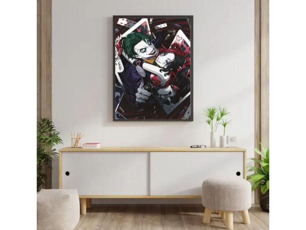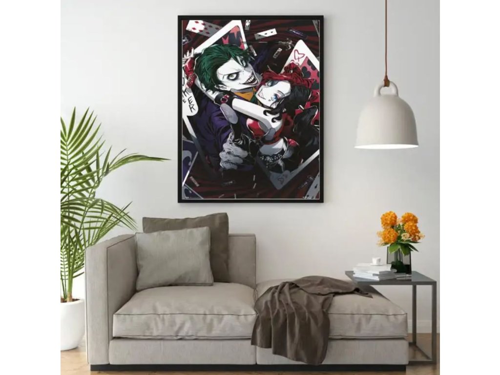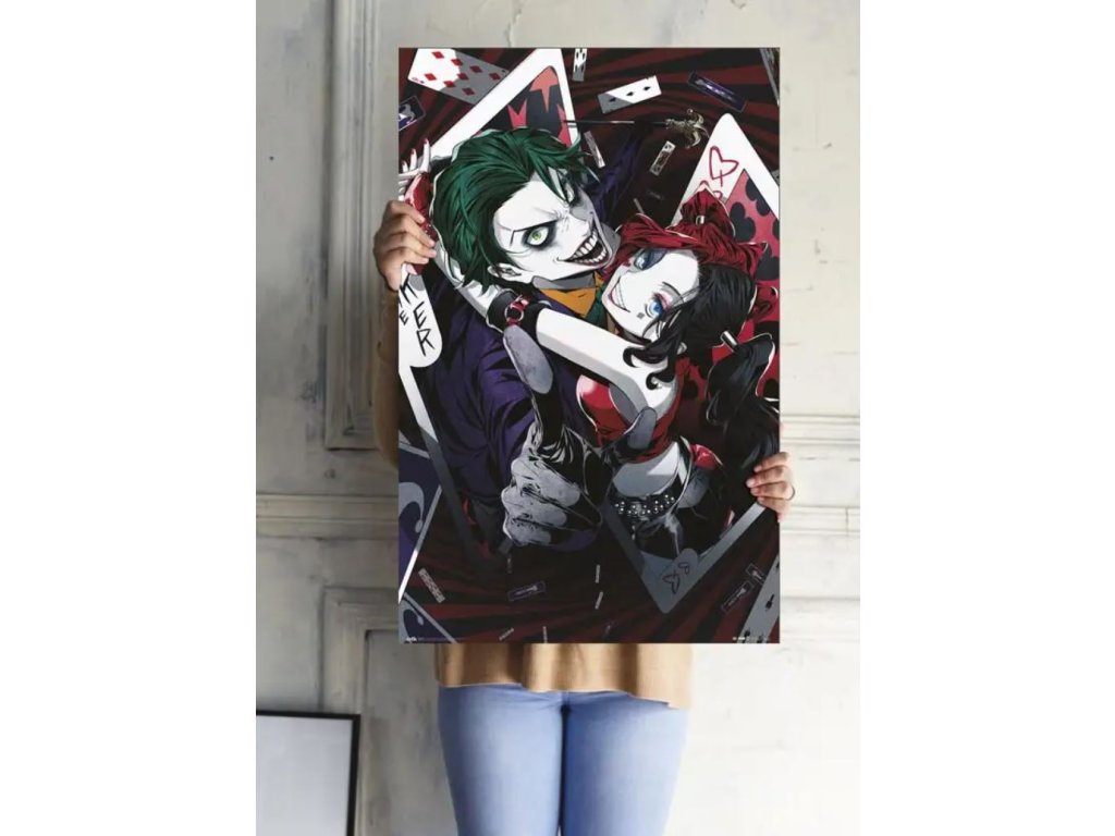 Plakát s logem a grafikou antihrdinů populárních komiksů: Harley Quinnové a Jokera. Plakát je vhodný nejen jako výzdoba na Halloween, ale například i do kanceláře či jiného bytového prostoru.