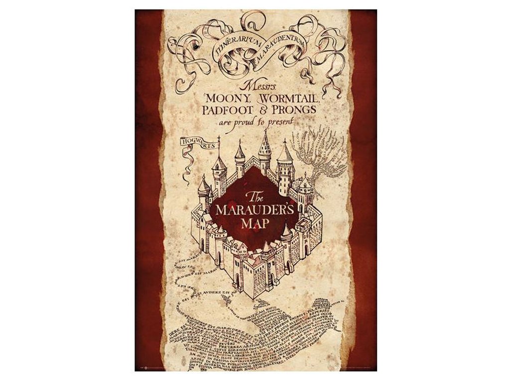 Velký plakát s grafikou The Marauders Map.