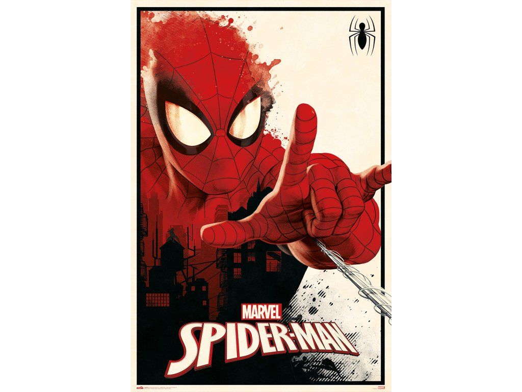 Oficiální plakát z katalogu produktů s licencí hrdiny Spiderman od komiksové společnosti Marvel.